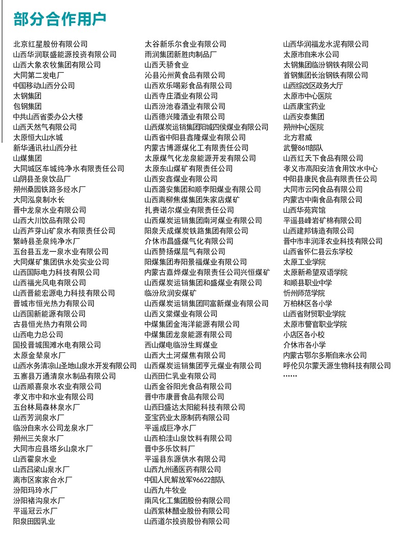 公司以“讓水的世界更潔凈、更健康”為宗旨,致力于邢臺人民的健康飲水事業,著重發展桶裝水、凈水設備、健康直飲水工程、小區分質供水工程及飲用水技術服務等業務。公司依托央企中國建筑及集團公司自身雄厚的技術實力和高品質的產品、完善的服務體系、值得信賴的質量保證,日益提升著自身的品牌知名度,銷量和市場占有率穩居全市產品前列。